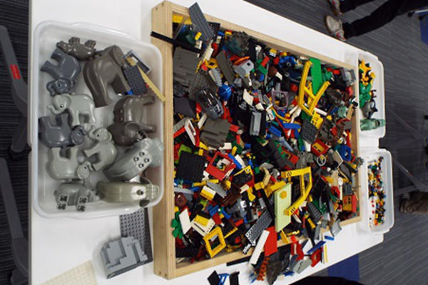 問題用紙と向き合った受験生は、課題をざっと読み通すと、次々と試験教室の中央に用意されたレゴブロックのテーブルに向かい、自分の作品に必要と思われるブロックや人形、動物などのパーツを取りに行きます。動きが早いのは、まずは最初の問いで課された作品を作り始めるためでしょうか。