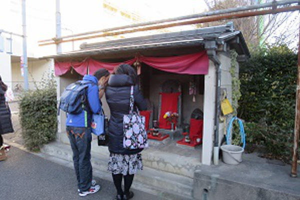 また、淡島通りを挟んだ向かい側にあるお地蔵様に手を合わせ合格祈願する受験生親子の姿も多く見られました。