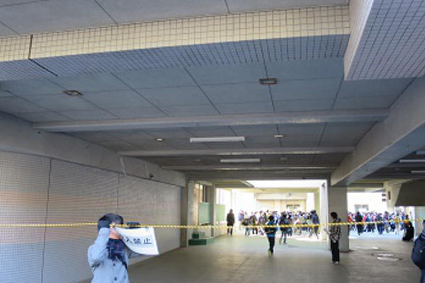 合格発表は、2月5日(日)に行われます。今日受験生たちが最初に集合した、このピロティに掲示される予定です。