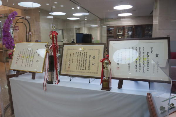 賞状や雛人形がお出迎え
