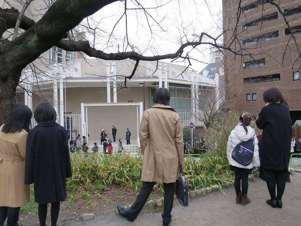 受験生の集合時間は8時15分。7時半頃のピークタイムまでは、近隣利用者のことも考えながら、雙葉の先生方による交通整理が行われます。