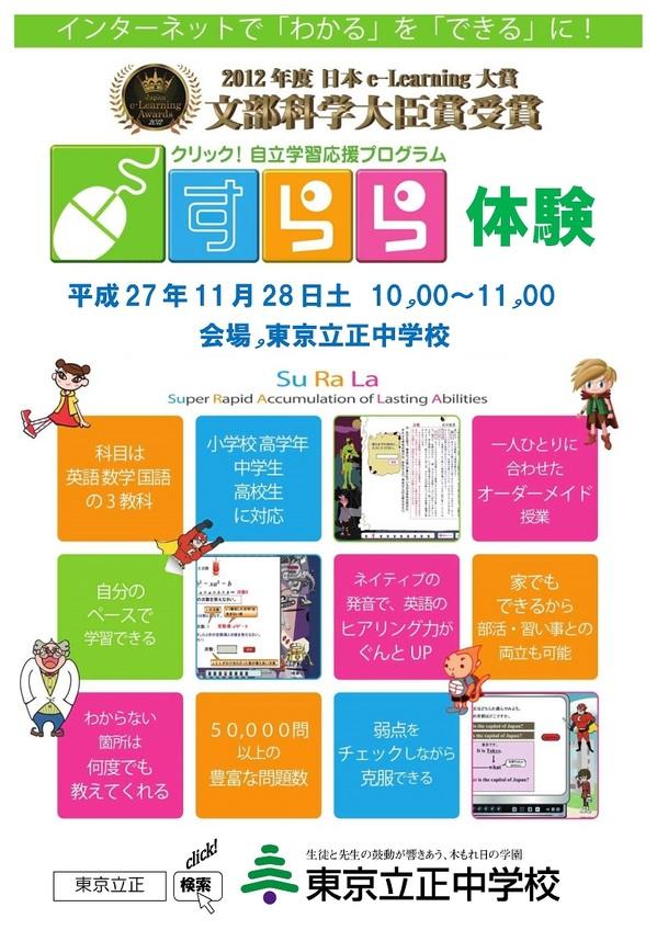 11月28日(土)に、杉並区の東京立正中学校にて体験型入試説明会『イノベーション体験(eラーニングすらら編)』が開催されます。