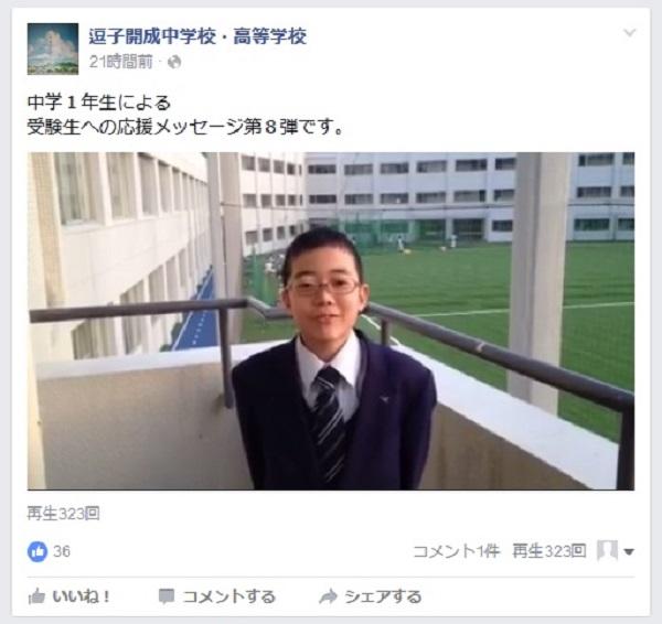 逗子開成中学校〈神奈川県逗子市・男子校〉では、やはり同校の公式フェイスブックページで1月中旬から、中学1年生(有志)による「受験生への応援メッセージ」を動画で贈り続けて(本日現在では第7弾まで)くれています。