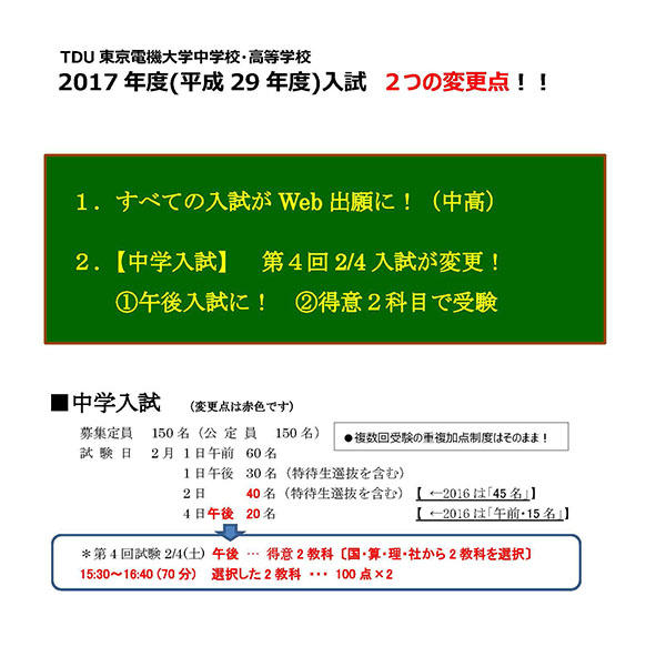 2017年東京電機大学中学校が「得意2科目入試」を新設!