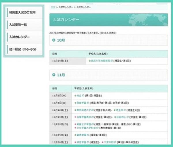 また、それに先駆けて『帰国生入試NAVI』サイトでは、来春2017年首都圏中学入試における「帰国生(一般入試とは別枠の)入試」実施校の入試日をお伝えする最新の2017年「帰国生入試カレンダー」を掲載しています。