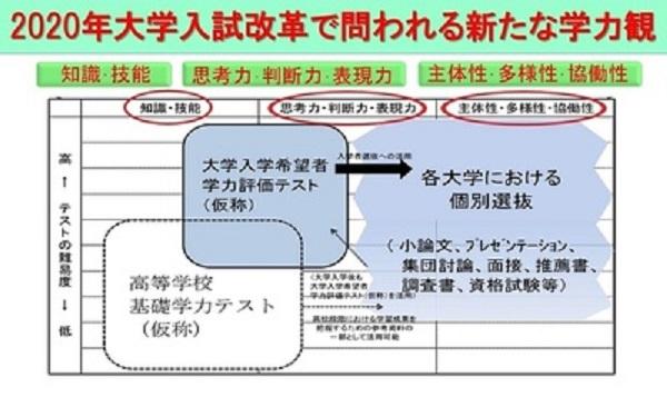 現在の小学生(現在の中2以降)は誰もが当事者となる「2020年大学入試改革」以降の大学入試では、現在の「大学入試センター試験」に代わる「大学入学希望者学力評価テスト」でも、「合科型」の入試問題や、多くの「記述・論述式問題」が出題されることが文科省の打ち出した方向性にも明記されており、そこでは、従来の大学入試問題で問われた「知識・技能」に加えて、「思考力・判断力・表現力」を問う出題をすると明示されています。