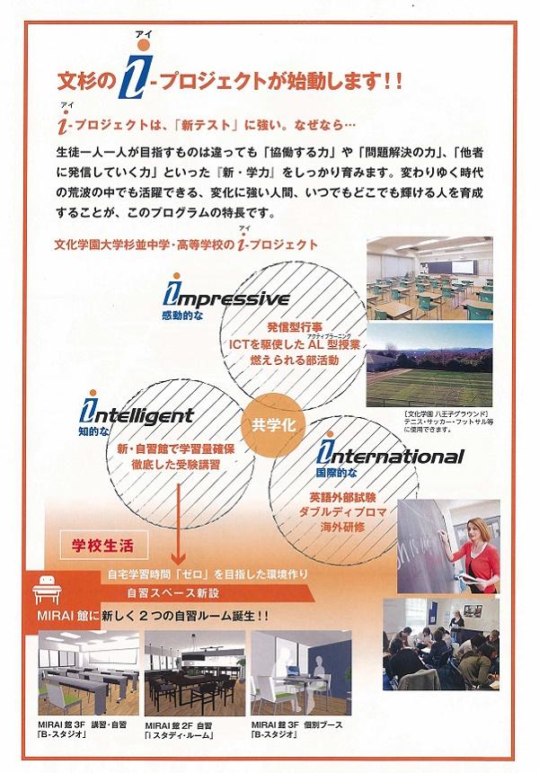 2018年度から文化学園大学杉並は共学化し、男女が共働して「新・学力」を培うプログラムをスタートさせます。世界標準へ向けた大学入試新テストに対応する3つの「i」。これまでの勉強に、部活動に元気いっぱいの文杉女子と、元気と情熱を持った文杉男子を育てていきたいと考えています。