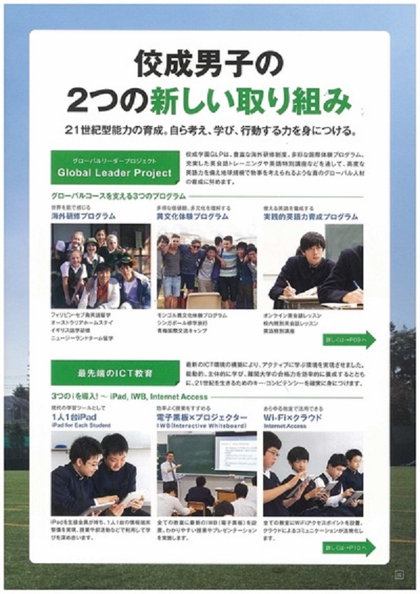 男子校のなかでは、かなり思い切った海外研修・異文化体験プログラムを実施し、最先端のICT教育も行うという佼成学園には、そうした教育に価値を感じる保護者からの、新たな期待が寄せられることが予想されます。