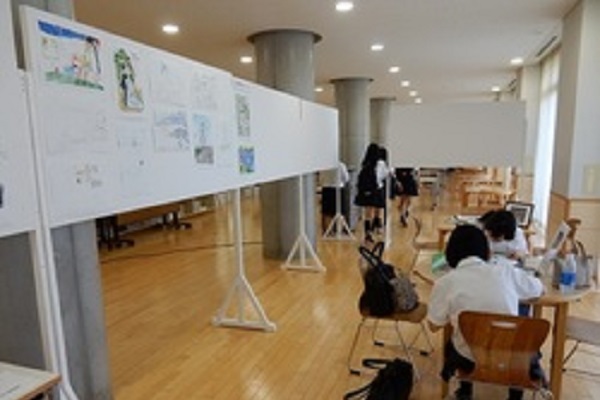 ご来場の皆さまや、小さなお子さまがこの場で描いた模写(コピー)を、パネルに貼って一覧で展示してあるコーナーも人気で、開催2日目にはすでに展示スペースを拡大したとのことです。