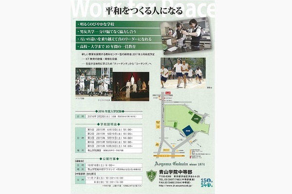 青山学院中等部は、4月25日(土)に開催した塾対象学校説明会で、現在すでに準備工事が進められている同学院中等部の「教科センター型」新校舎の第1期工事(教室棟)の完成が、2017年2月に予定されていることを公表しました。