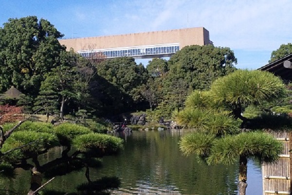 お客様は「深川七福神巡り」の途中に、珍しい空中図書館でひと休みして、生徒さんたちによるお茶やお菓子での「お・も・て・な・し」を受けながら、地上30mからの清澄庭園や清澄公園の眺望を楽しめます。