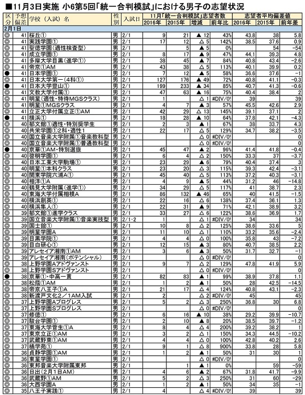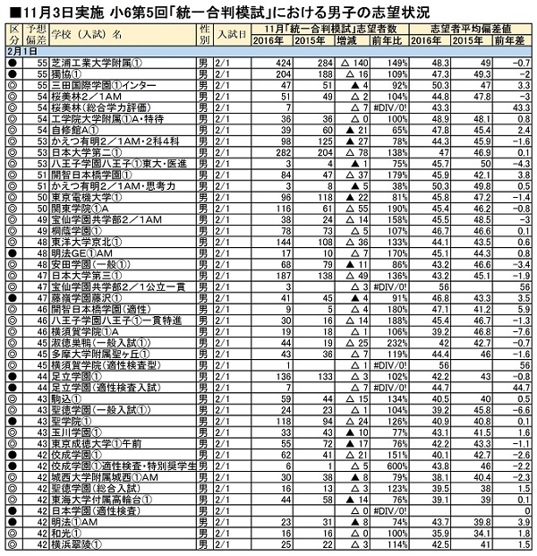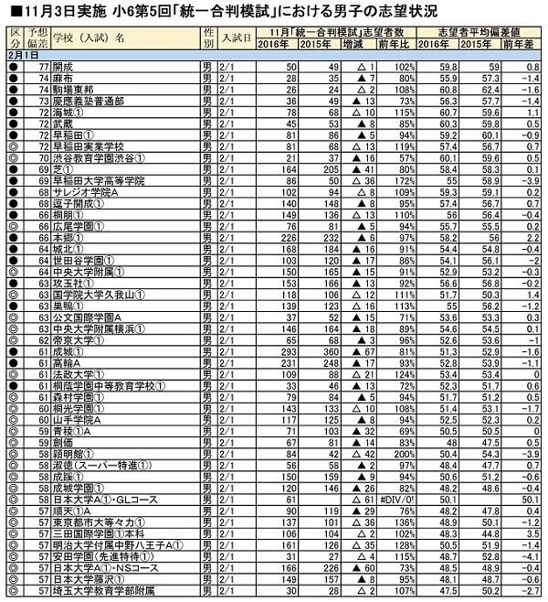 どうなる2017年入試。男子2月1日入試校の人気動向