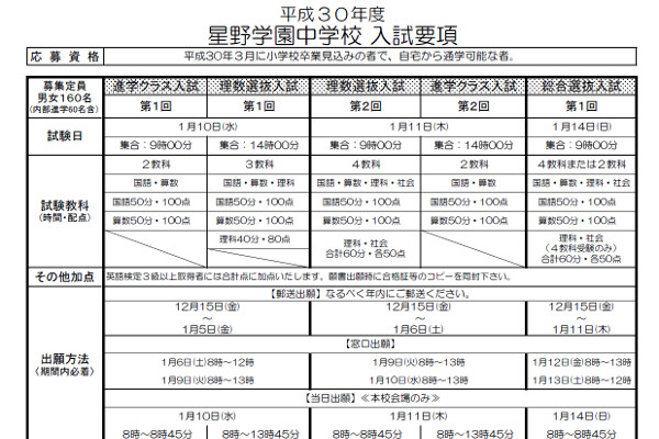 星野学園<埼玉・川越市。共学校>では、1月10日入試と1月11日入試とで2回、理数選抜入試を設けていましたが、来春2018年入試で、1月11日に行われる理数選抜入試(第2回)の入試内容を変更することを公表いたしました。