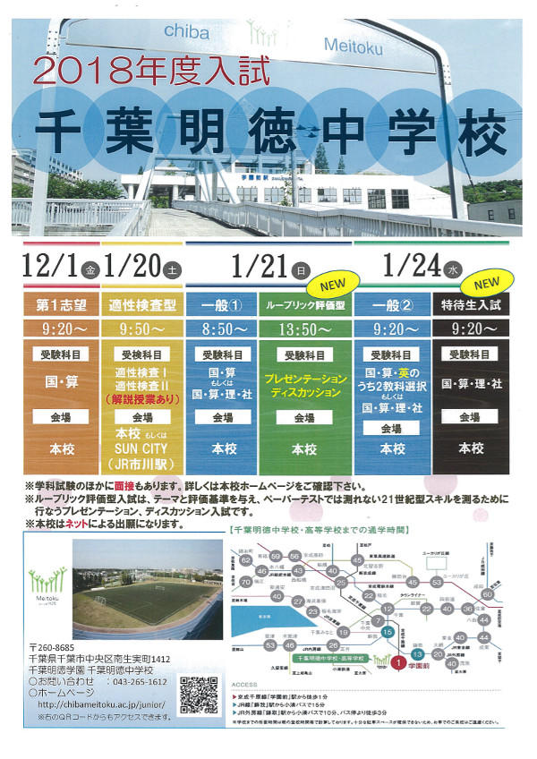 各イベントには予約が必要になりますので、千葉明徳HPの2017年度学校説明会の案内より、詳しい内容をご確認の上、登録と予約をしてご参加ください。
