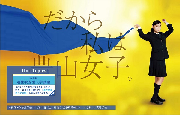 今年度からは、「私は女子にしばられない。」、「だから私は豊山女子」というコンセプトを同校の『学校案内』やポスター、Webサイトでも前面に打ち出し、そこでは新たなグローバル時代に生きる女性像と、その第一線で堂々と活躍できる力を育てる同校の教育の“進化”が伝えられています。