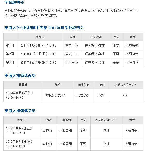 また、10月21日(土)、11月19日(日)、12月17日(日)に学校説明会が行われます。「中高大の一貫教育システム」「文武両道の精神」「英語教育・理科教育」「特色ある学校・学園行事」これらに代表されるように付属校のメリットを最大限に活かし、一人ひとりを大切に総合的な力を育む東海大学相模の教育にはパンフレットやホームページでは伝えきれない魅力がたくさんあります。ぜひ公開行事やオープンキャンパスで同校の空気に触れてみてはいかがでしょうか。