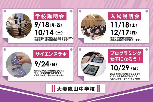 詳しくは大妻嵐山中学校の生徒募集要項をご覧下さい。