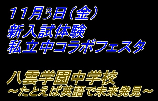 11月3日(金・祝)「新入試体験! 私立中コラボフェスタ」八雲学園からのウェルカム・メッセージ!