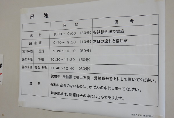 この日、敷地内に3つある校舎内は、どの教室も受験生でいっぱいになります。このライバルの多さは受験生のみんなは覚悟してきたことでしょう。これまでも模試を受けてきたとはいえ、小6である受験生たちにとっては、これほどの大きな規模感は未知の体験です。