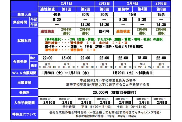 2科4科選択・・・2科(国語・算数)または4科(国語・算数・理科・社会)の選択