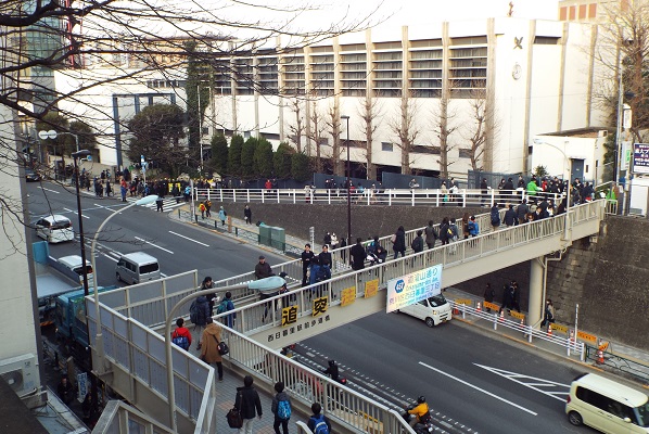 合格をめざして陸橋を渡り、開成の正門へと向かう!
