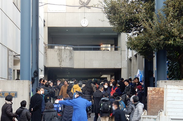 例年、受験生の激励に駆けつける多くの進学塾の先生やスタッフは、7時の開門の前に午前6時50分に各塾の代表者による抽選を行ったうえで入場させる形をとるなど、近隣の人々への配慮を兼ねて、混乱なく受験生が入場できるような気配りがされています。