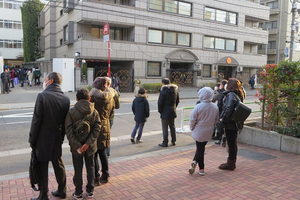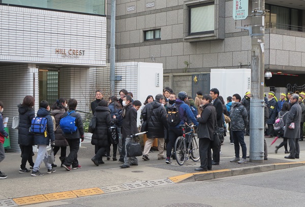 最寄りの広尾駅からの街道沿いには、難関校・麻布に果敢にチャレンジする受験生親子の列が続きます。