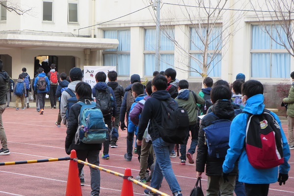 なお、早くに到着した受験生と保護者のために、講堂が控え室として朝7時から開放されていました。試験会場である教室への移動が開始するまで、受験生が親子一緒に暖をとれるよう配慮がなされているのです。