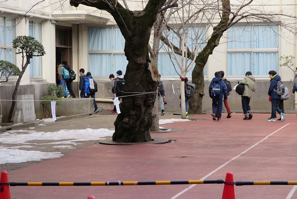 受験生は8時15分頃までに登校することが推奨されているせいか、1時間前の7時15分頃になると受験生が1人、また1人と現れました。