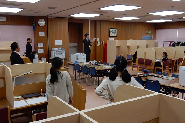 この日、受験生のために用意された発表用の会場は2教室。1教室を2つに区切り、それぞれ2名の先生に向けて、受験生は1人ずつ発表(5~10分)していきます。