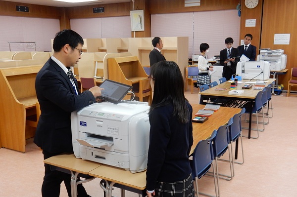 タブレットで調べたWebページから、転用したい写真や情報を、係の先生に頼んでプリントアウトしてもらうことも可能です。