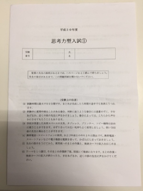 昨年から新設された、この「思考力型入試」に、どのような受験生がチャレンジしに来て、どのような姿勢や成果を見せてくれるのか、同校の先生方にとっての期待や関心がそれだけ大きいのでしょう。