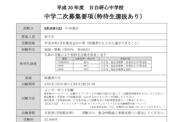 2/10に試験日を設定し、二次募集を開始!目白研心