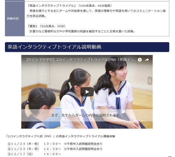 2/3PM、共立女子中の英語インタラクティブ・トライアル入試