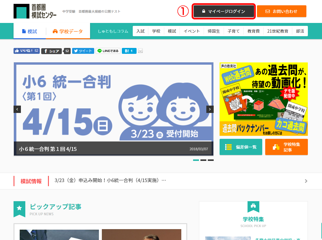 ①トップページの[マイページログイン]をクリック