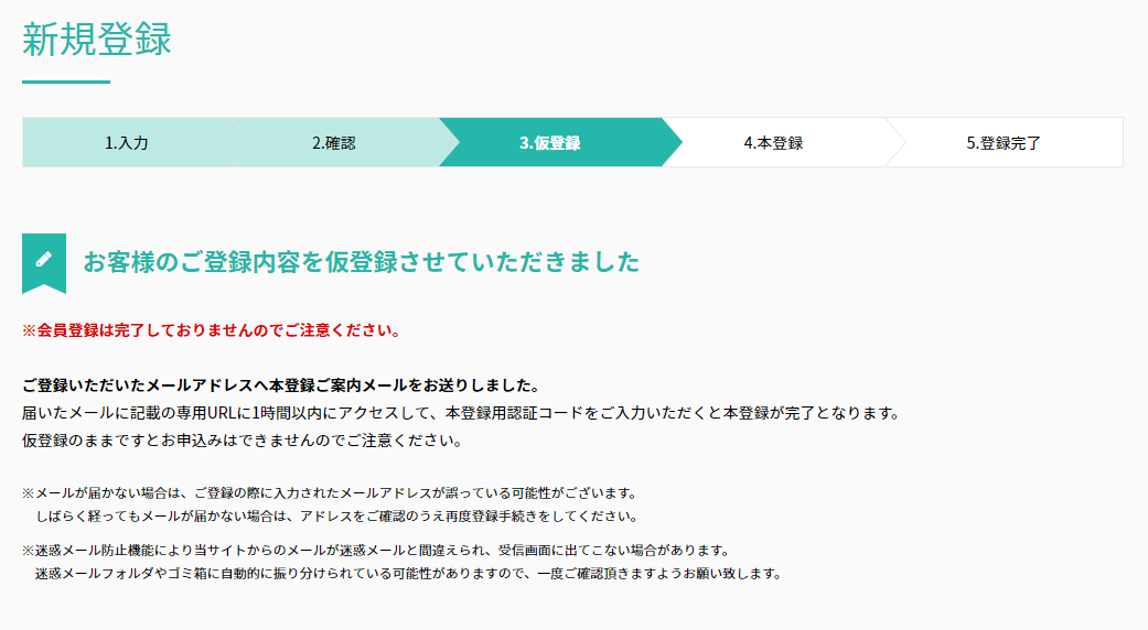 ⑤仮登録完了