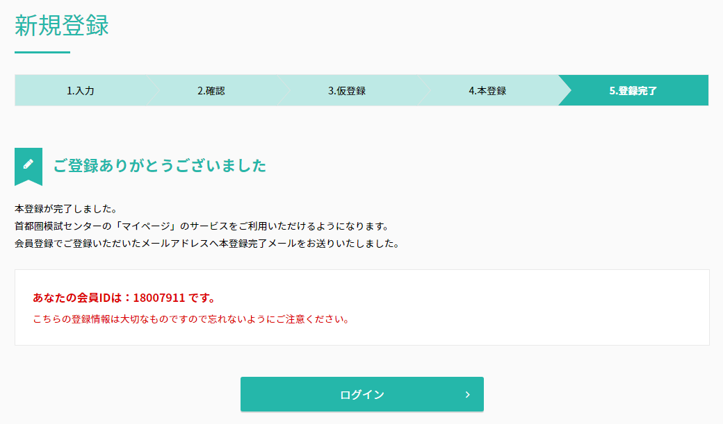 会員ID発行。ログインに必要なので忘れないようご注意ください。(【マイページ】登録完了 の自動返信メールも届きます。)