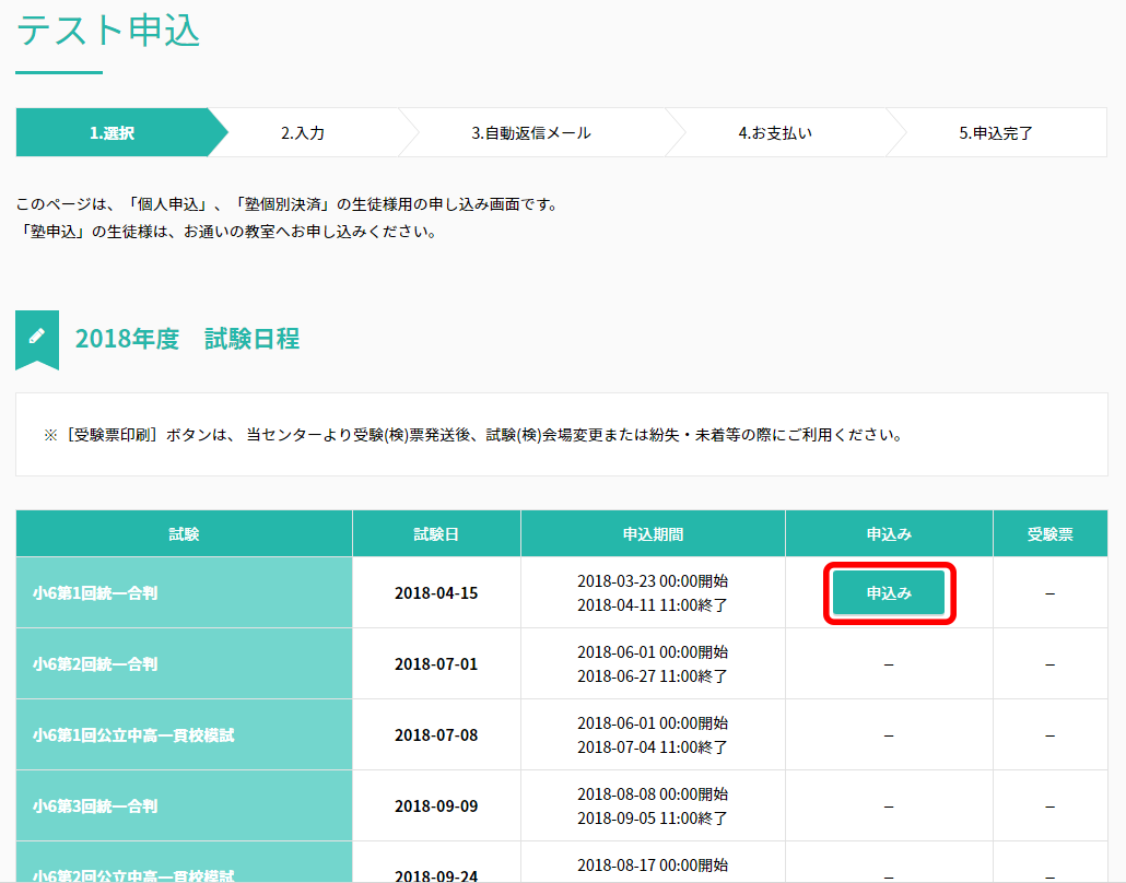 テスト申込
