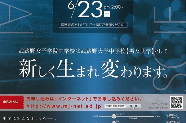 武蔵野女子学院中学校〈東京・西東京市。女子校〉が、来春2019年から男女共学化し、校名も武蔵野大学中学校と改めて、新たなスタートを切ることが先に公表されています。
