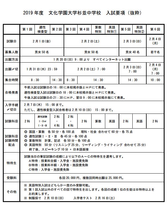 2018年4月より共学化した文化学園大学杉並中学校が2019年入試の概要を発表しました。