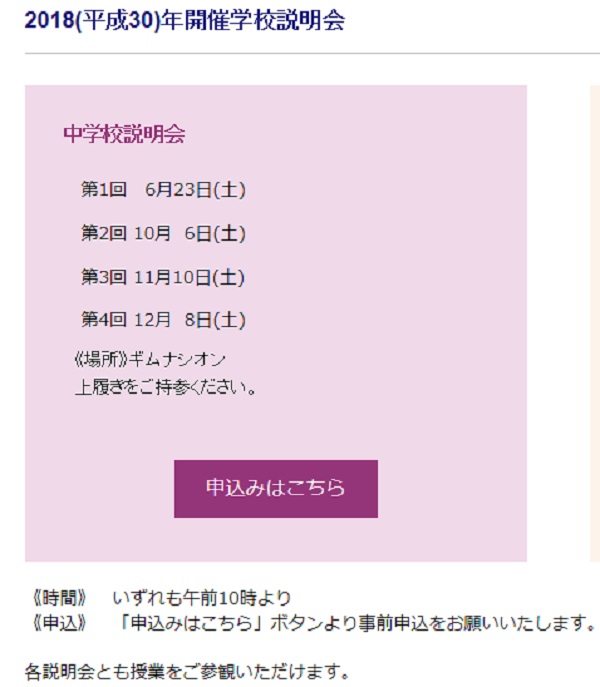 今後の学校説明会は下記のとおりです。