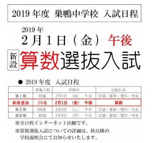 巣鴨中が、2019年入試で2/1PMに「算数選抜入試」を新設