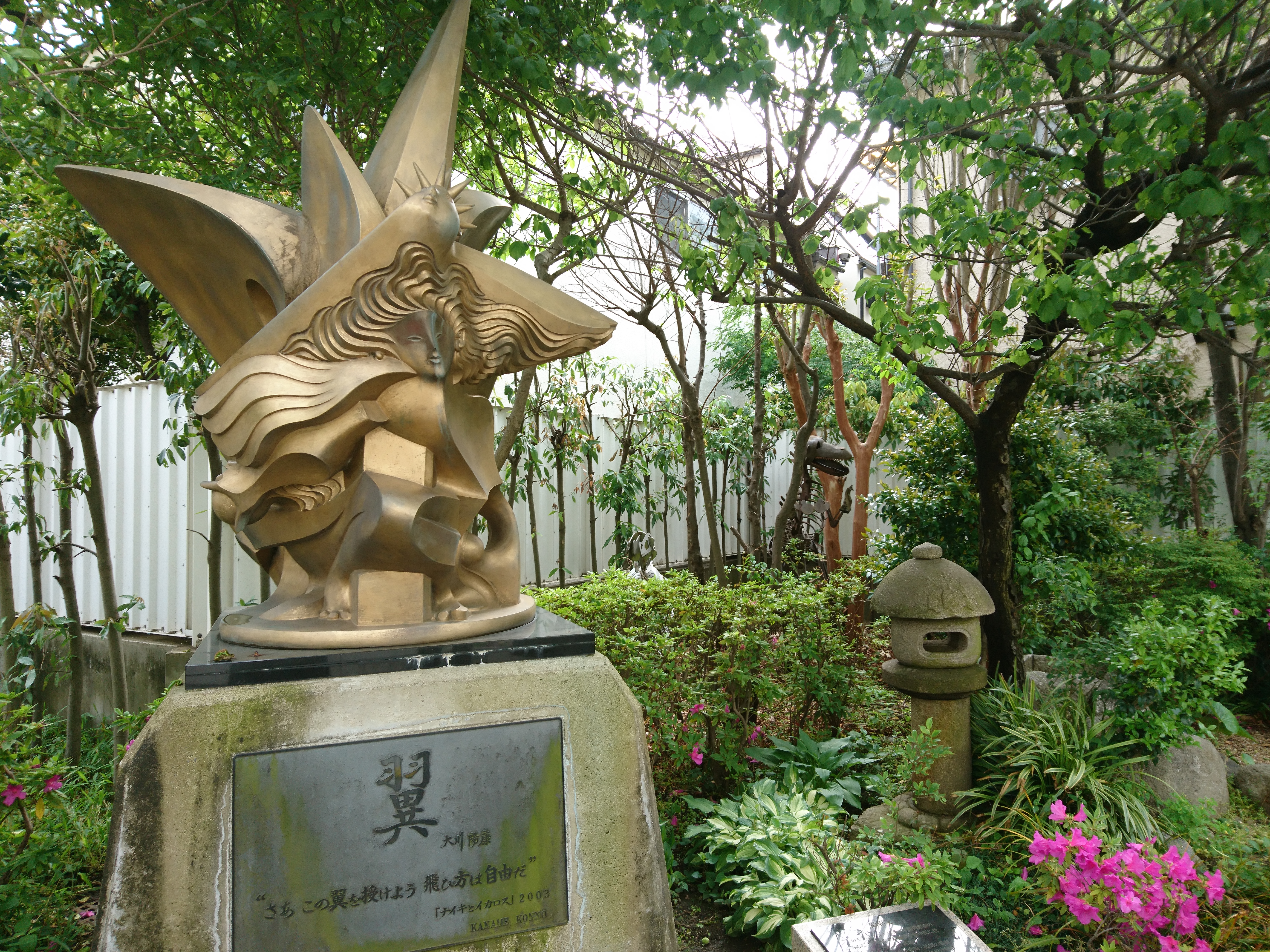 校門を入ると、地面に二本の“線”が平行に走っています。オープンキャンパスや文化祭などで同校を訪ねると、ここを走るミニSLを見ることができます。そう、この線は、ミニSLのための鉄道レール。こうしたものづくりの伝統を、高校では「理数工学科」「創造工学科」に脈脈と受け継ぎ、同時に普通科を拡大。そして中学では進学型の中高一貫校化を推進してきました。あらゆる可能性を内包する学校としての魅力は、外から見るだけではうかがい知ることはできません。一歩、中に入ると、テラコヤ(チュータールーム)、プレゼンテーションルーム、Communication-lab、工房など、あらゆる居場所、興味関心を試せる場所が用意されています。校門を入ると、冒頭でご紹介したミニSLの線路やオブジェ、前庭などちょっとした探検気分に。「この翼を授けよう! 飛び方は自由だ!」という彫刻“翼”も、生徒を見守っています。
