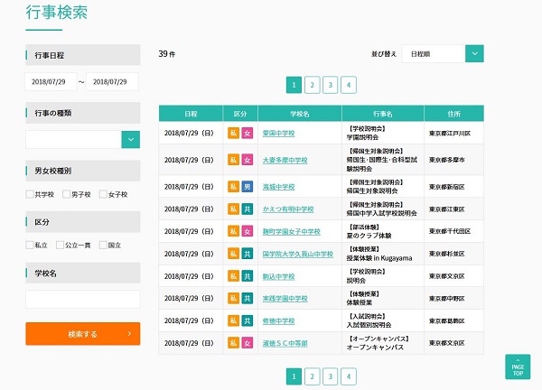 行事検索でお気に入りの学校のイベントを探そう