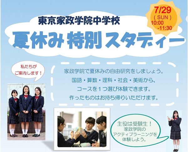 ・東京家政学院:夏休み特別スタディー(体験授業等)