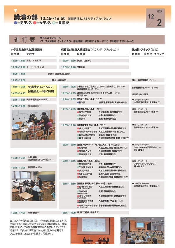 12/2(日)「新入試体験!私立中コラボフェスタ」の内容(体験講座と講演の部)詳細