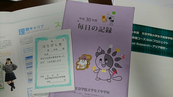 文京学院大学女子では、教員は生徒のやる気を引き出す指導を心がけ、研鑽に努めています。また、あちらこちらに種を蒔いておけば自分から拾いに行く生徒もいれば、そうではない生徒もいますので、軽く背中を押してあげるような工夫をしているといいます。例えば「はなびら賞」。日常の細やかな心遣いや思いやりを担任が掬い上げて、該当者には小さな賞状でほめ、周囲とも共有します。また「毎日の記録」(中学)、「学習連絡帳」(高校)を書くことで、自己管理から自律への成長をフォロー。担任との、このアナログなやりとりを大切にする一方、タブレットで自身の活動を記録していくeポートフォリオも同時に進めています。一人ひとりの生徒は、温かくきめ細かに見守られ、徐々に自分に自信を持てるように変化していくそうです。女子校の誰でもリーダーになれる環境、得意なものを伸ばす場所がある学校だからこその変化でしょう。