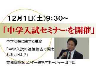 武蔵野東中で12/1(土)「中学入試セミナー」開催!