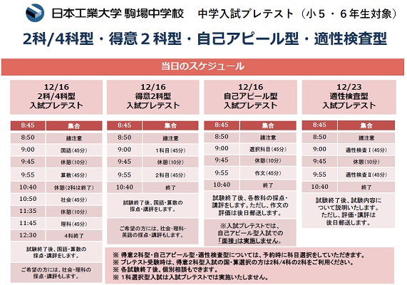 12月16日(日)に行われるのは、「教科型入試プレテスト」です。