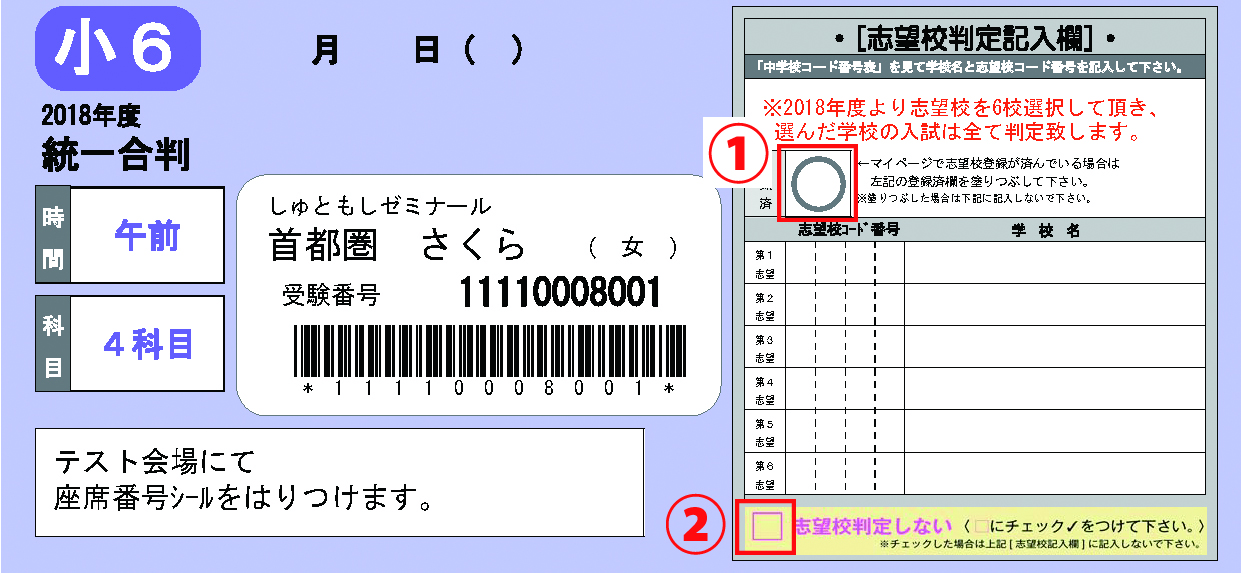 受験票の□志望校判定しないにチェックをいれてください(図②参照)